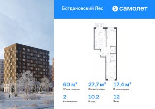 Строим кварталы для жизни с заботой о будущем. Предлагается 2-комнатная квартира комфорт-класса 60,04 кв.м в корпусе 10.2 на 12 этаже, в ЖК "Богдановский Лес"