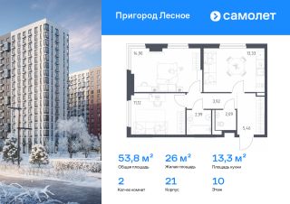 Строим кварталы для жизни с заботой о будущем. Предлагается 2-комнатная квартира комфорт-класса 53,81 кв.м в корпусе 21 на 10 этаже, в ЖК "Пригород Лесное"
