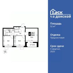 Продаётся 2-к квартира номер 358 общей площадью 52.6 кв.м. на 16-м этаже 24 этажного здания. Отделка Whitebox. Цена с учётом скидки.