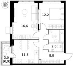 Продаётся 2-к квартира номер 113 общей площадью 55.6 кв.м. на 12-м этаже 24 этажного здания. Без отделки.