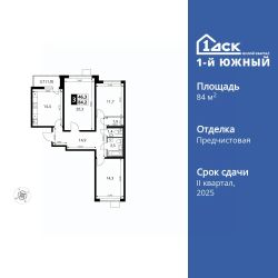 Продаётся 3-к квартира номер 573 общей площадью 84.2 кв.м. на 13-м этаже 25 этажного здания. Отделка Whitebox. Цена с учётом скидки.