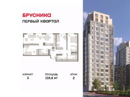 Квартира с кухней-гостиной и тремя спальнями в "Первом квартале". Особенности планировки: мастер-спальня, предчистовая отделка.