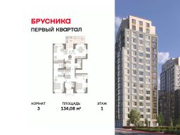 Квартира с кухней-гостиной и тремя спальнями в "Первом квартале". Особенности планировки: вид во двор, второй санузел, гардеробная, мастер-спальня, окна в пол, отдельный вход, панорамное остекление, постирочная, разнесённые спальни, свободная планировка, терраса.