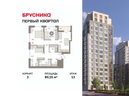 Квартира с кухней-гостиной и тремя спальнями в "Первом квартале". Особенности планировки: мастер-спальня, предчистовая отделка.