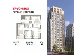 Квартира с кухней-гостиной и тремя спальнями в "Первом квартале". Особенности планировки: второй санузел, мастер-спальня, предчистовая отделка.