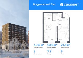 Строим кварталы для жизни с заботой о будущем. Предлагается 1-комнатная квартира комфорт-класса 40,79 кв.м в корпусе 7.3 на 5 этаже, в ЖК "Богдановский Лес"