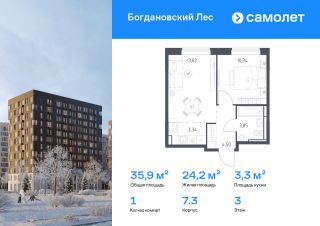 Строим кварталы для жизни с заботой о будущем. Предлагается 1-комнатная квартира комфорт-класса 35,85 кв.м в корпусе 7.3 на 3 этаже, в ЖК "Богдановский Лес"