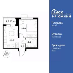 Продаётся 1-к квартира номер 204 общей площадью 31.4 кв.м. на 15-м этаже 24 этажного здания. Чистовая отделка.
