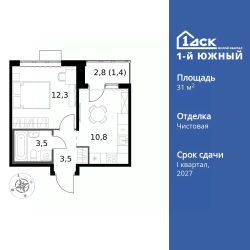 Продаётся 1-к квартира номер 171 общей площадью 31.5 кв.м. на 11-м этаже 24 этажного здания. Чистовая отделка.