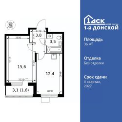 Продаётся 1-к квартира номер 131 общей площадью 36.9 кв.м. на 13-м этаже 24 этажного здания. Без отделки.
