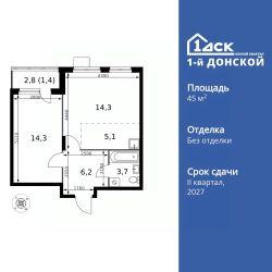 Продаётся 2-к квартира номер 687 общей площадью 45 кв.м. на 16-м этаже 24 этажного здания. Без отделки.