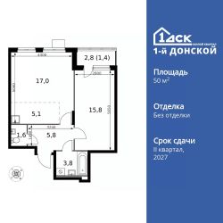Продаётся 2-к квартира номер 699 общей площадью 50.5 кв.м. на 17-м этаже 24 этажного здания. Без отделки.