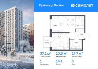 Строим кварталы для жизни с заботой о будущем. Предлагается 1-комнатная квартира комфорт-класса 37,12 кв.м в корпусе 14.1 на 5 этаже, в ЖК "Пригород Лесное"