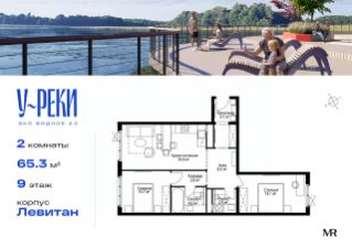 Продаётся 2-комнатная квартира общей площадью 65.30 м² с чистовой отделкой в ЖК "У реки. Эко Видное 2.0" на 9-м этаже 17 этажного корпуса Левитан.