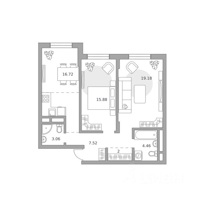 Продаётся 2-комнатная квартира 336, площадью 68,82 м², на 7 этаже в ЖК "Живописный" корпус 1. Стоимость — от 16989250 руб. Квартира с отделкой, планировка односторонняя, окна во двор.
