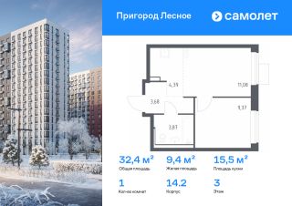 Строим кварталы для жизни с заботой о будущем. Предлагается 1-комнатная квартира комфорт-класса 32,39 кв.м в корпусе 14.2 на 3 этаже, в ЖК "Пригород Лесное"
