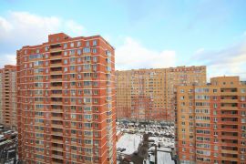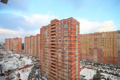 Нестандартная лоджия, длиной почти 7 метров, идеально подойдёт для размещения нескольких функциональных зон. Отличный вид на современные жилые комплексы