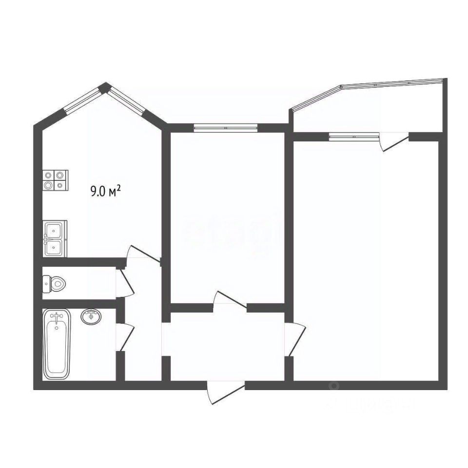 • Жилая — 30 м², кухня — 9 м²