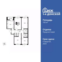 Продаётся 4-к квартира номер 428 общей площадью 100.7 кв.м. на 11-м этаже 20 этажного здания. Отделка Whitebox. Цена с учётом скидки.