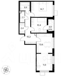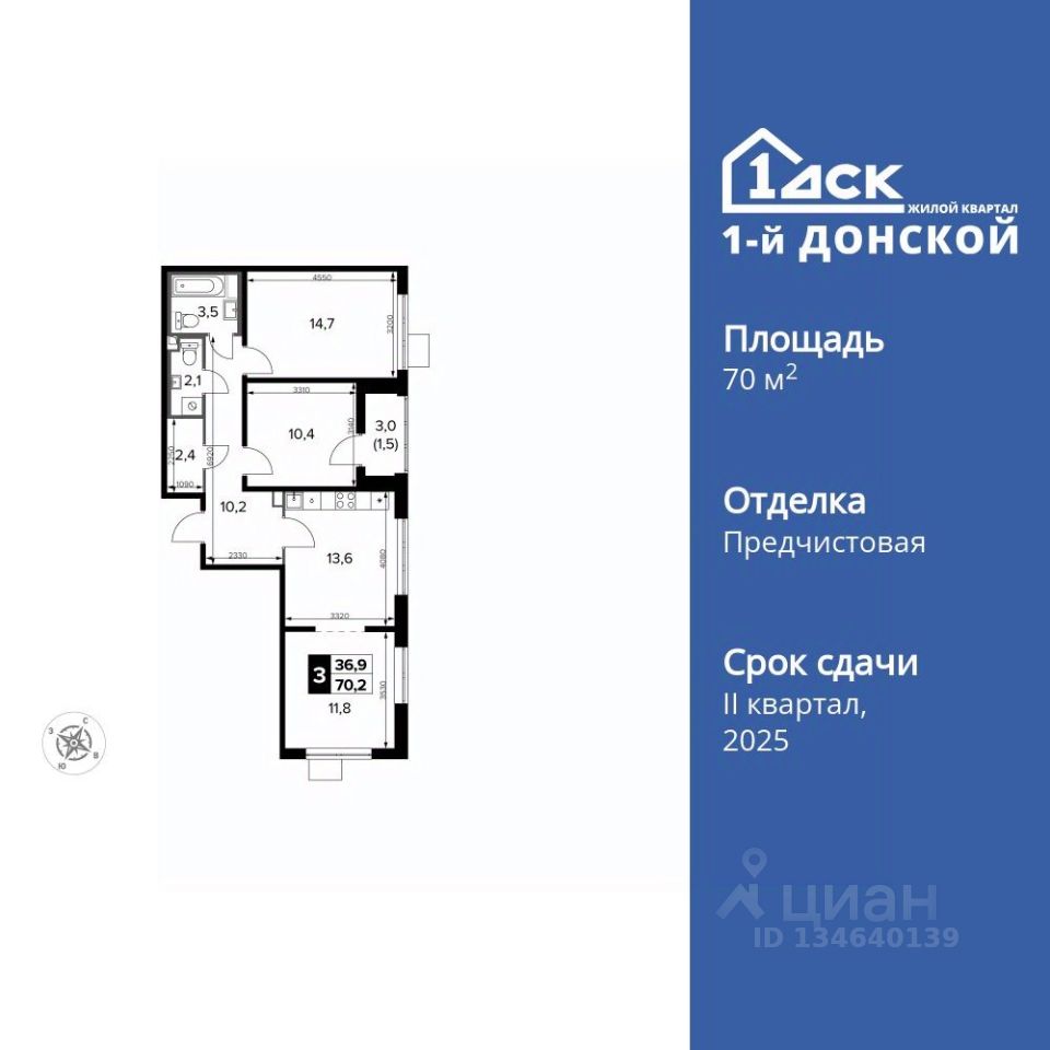 Продаётся 3-к квартира номер 364 общей площадью 70.2 кв.м. на 18-м этаже 24 этажного здания. Отделка Whitebox. Цена с учётом скидки.
