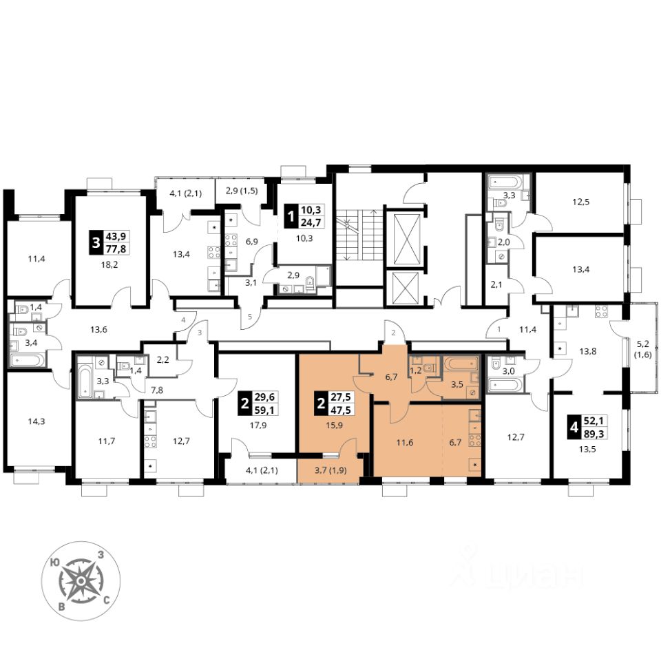 Продаётся 2-к квартира номер 618 общей площадью 47.7 кв.м. на 21-м этаже 22 этажного здания. Отделка Whitebox.