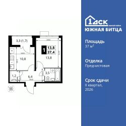 Продаётся 1-к квартира номер 635 общей площадью 37.7 кв.м. на 3-м этаже 22 этажного здания. Отделка Whitebox.