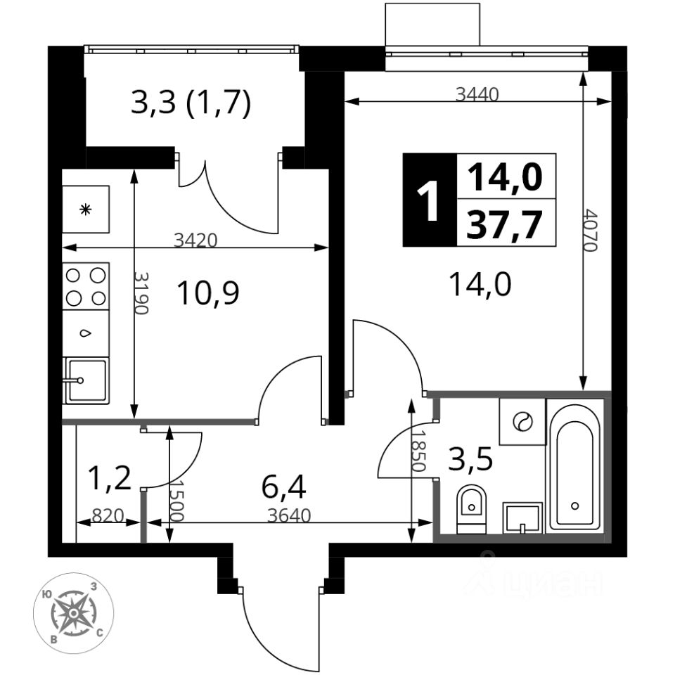 Продаётся 1-к квартира номер 715 общей площадью 38 кв.м. на 13-м этаже 22 этажного здания. Отделка Whitebox.