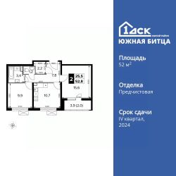 Продаётся 2-к квартира номер 243 общей площадью 52.9 кв.м. на 21-м этаже 22 этажного здания. Отделка Whitebox. Цена с учётом скидки.