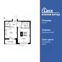Продаётся 1-к квартира номер 510 общей площадью 37.7 кв.м. на 2-м этаже 23 этажного здания. Отделка Whitebox. Цена с учётом скидки.