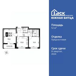 Продаётся 2-к квартира номер 246 общей площадью 52.9 кв.м. на 17-м этаже 24 этажного здания. Отделка Whitebox. Цена с учётом скидки.