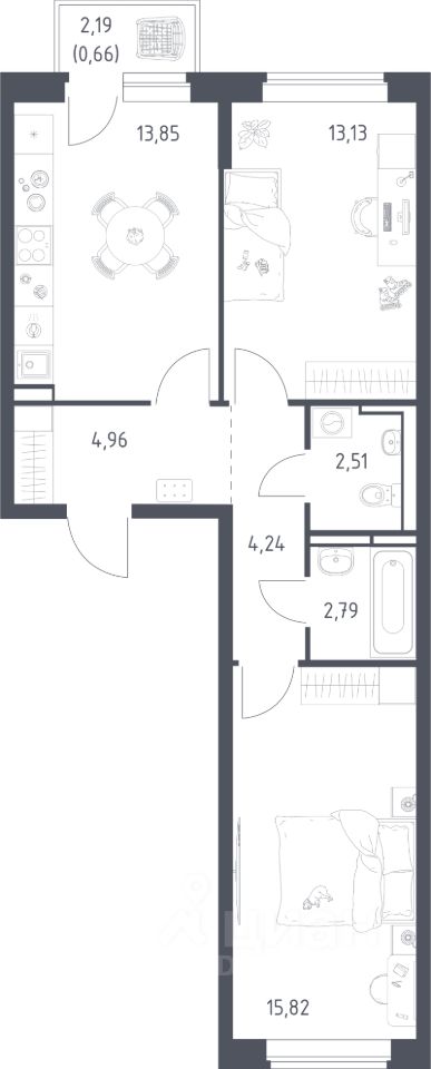 Продаётся 2-комнатная квартира в строящемся доме (17), срок сдачи: II-кв. 2026, общей площадью 57.96 кв.м., на 6 этаже. Масштабный проект, который соседствует с природными красотами Подмосковья. Благодаря близости заповедника и лесопарка в районе благоприятная экологическая обстановка. И вы всегда найдете место для отдыха на свежем воздухе - будь то ежедневная прогулка или воскресный пикник с друзьями.