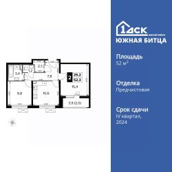 Продаётся 2-к квартира номер 187 общей площадью 52.4 кв.м. на 7-м этаже 22 этажного здания. Отделка Whitebox. Цена с учётом скидки.