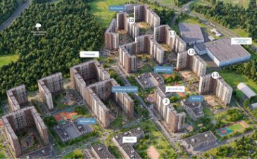3 детских сада, 2 большие школы, пешеходный бульвар-дендрарий, детские, спортивные и рекреационные зоны, велодорожки.