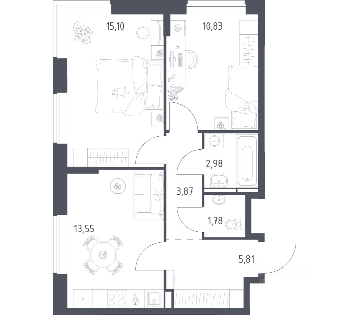 Строим кварталы для жизни с заботой о будущем. Предлагается 2-комнатная квартира комфорт-класса площадью 53,92 кв.м в корпусе 10.2 на 7-м этаже, в жилом комплексе "Богдановский Лес".