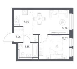Строим кварталы для жизни с заботой о будущем. Предлагается 1-комнатная квартира комфорт-класса площадью 34,58 кв.м в корпусе 7.4 на 12-м этаже, в жилом комплексе "Богдановский Лес".