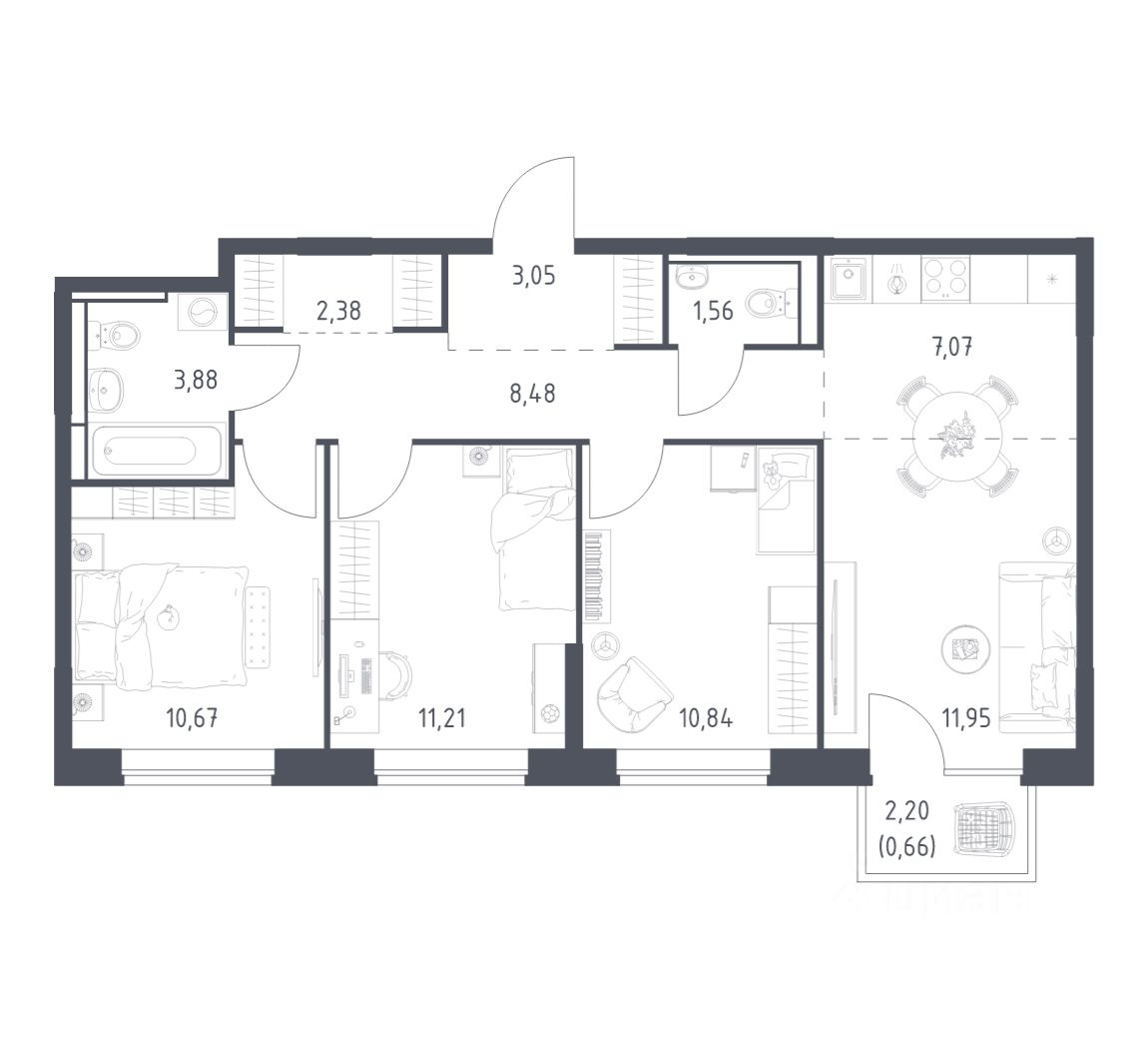 Строим кварталы для жизни с заботой о будущем. Предлагается 3-комнатная квартира комфорт-класса площадью 71,75 кв.м в корпусе 10.1 на 12-м этаже, в жилом комплексе "Богдановский Лес".
