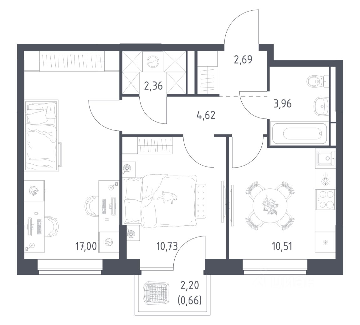 Строим кварталы для жизни с заботой о будущем. Предлагается 2-комнатная квартира комфорт-класса площадью 52,53 кв.м в корпусе 10.1 на 8-м этаже, в жилом комплексе "Богдановский Лес".