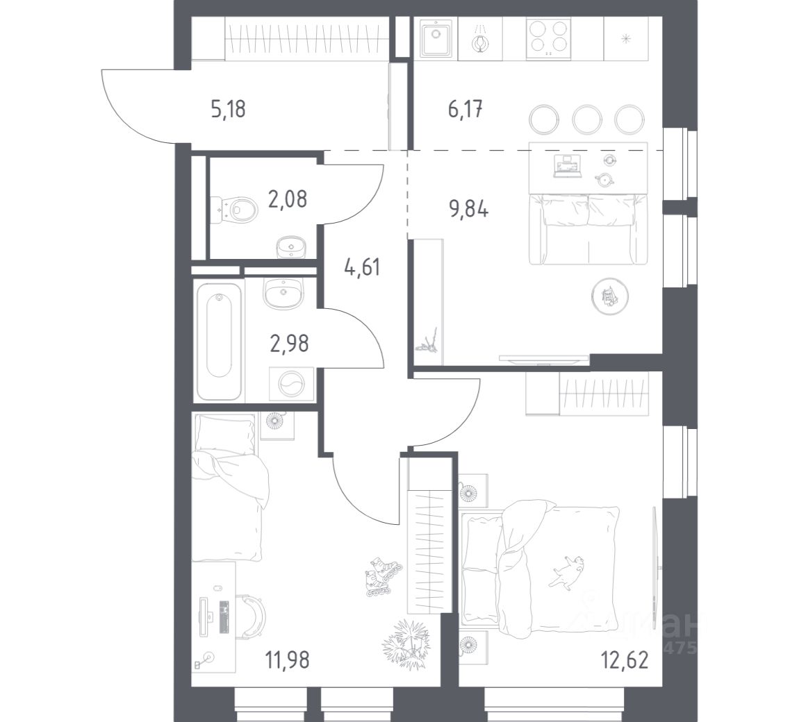 Строим кварталы для жизни с заботой о будущем. Предлагается 2-комнатная квартира комфорт-класса площадью 55,46 кв.м в корпусе 7.2 на 12-м этаже, в жилом комплексе "Богдановский Лес".