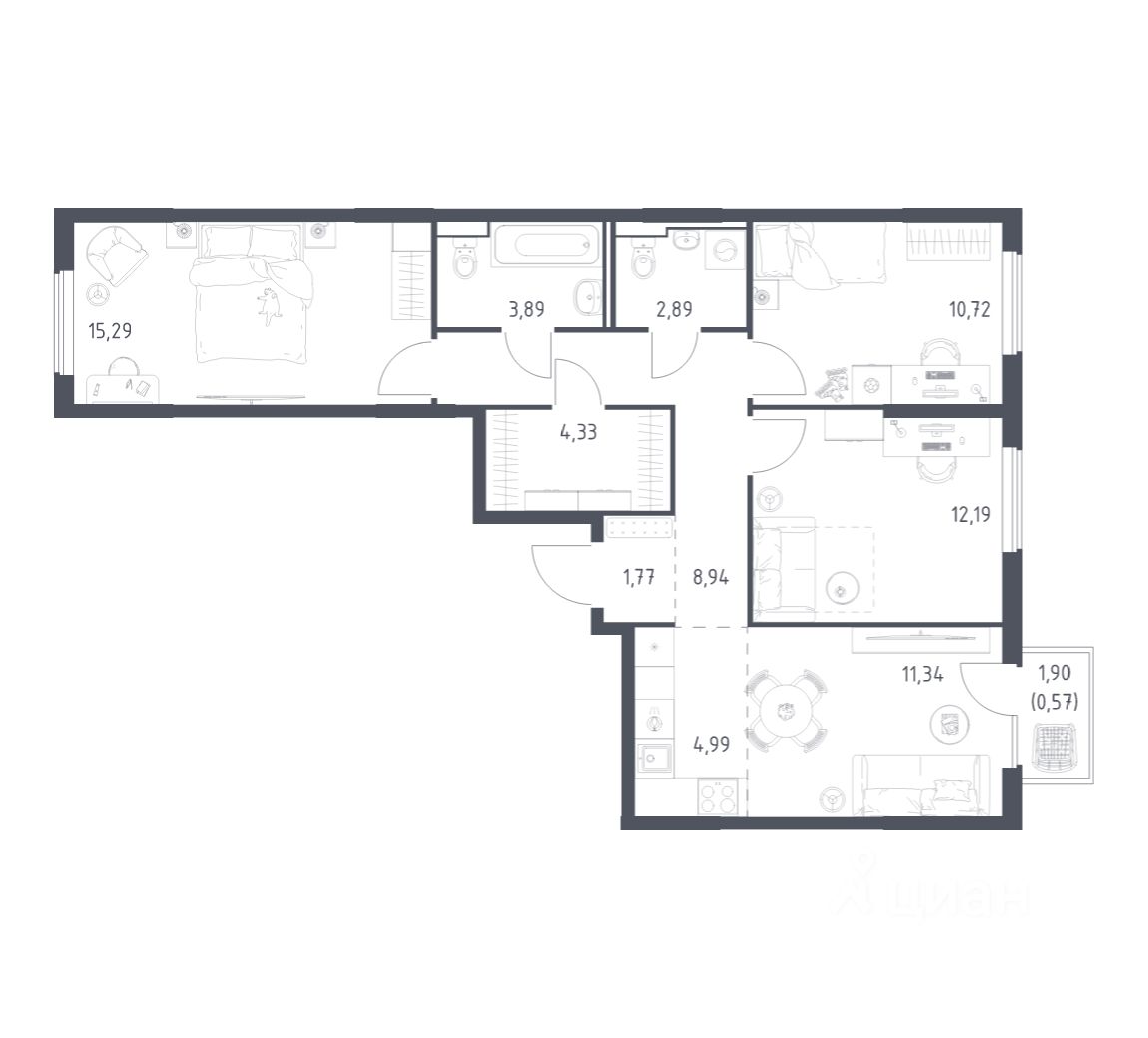Строим кварталы для жизни с заботой о будущем. Предлагается 3-комнатная квартира комфорт-класса площадью 76,92 кв.м в корпусе 6.1 на 9-м этаже, в жилом комплексе "Горки Парк".