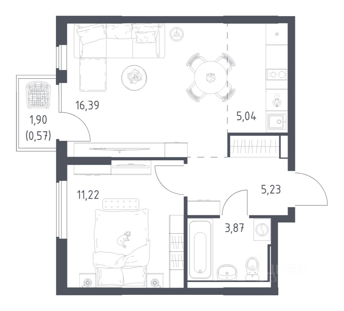 Строим кварталы для жизни с заботой о будущем. Предлагается 1-комнатная квартира комфорт-класса площадью 42,32 кв.м в корпусе 6.1 на 11-м этаже, в жилом комплексе "Горки Парк".