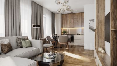 А если не хочется тратить время на ремонт, можно выбрать опцию — с отделкой. Перед тем как отдать ключи, застройщик установит натяжные потолки, поклеит обои под покраску, положит ламинат светлых тонов, а в санузлах — керамическую плитку и керамогранит.