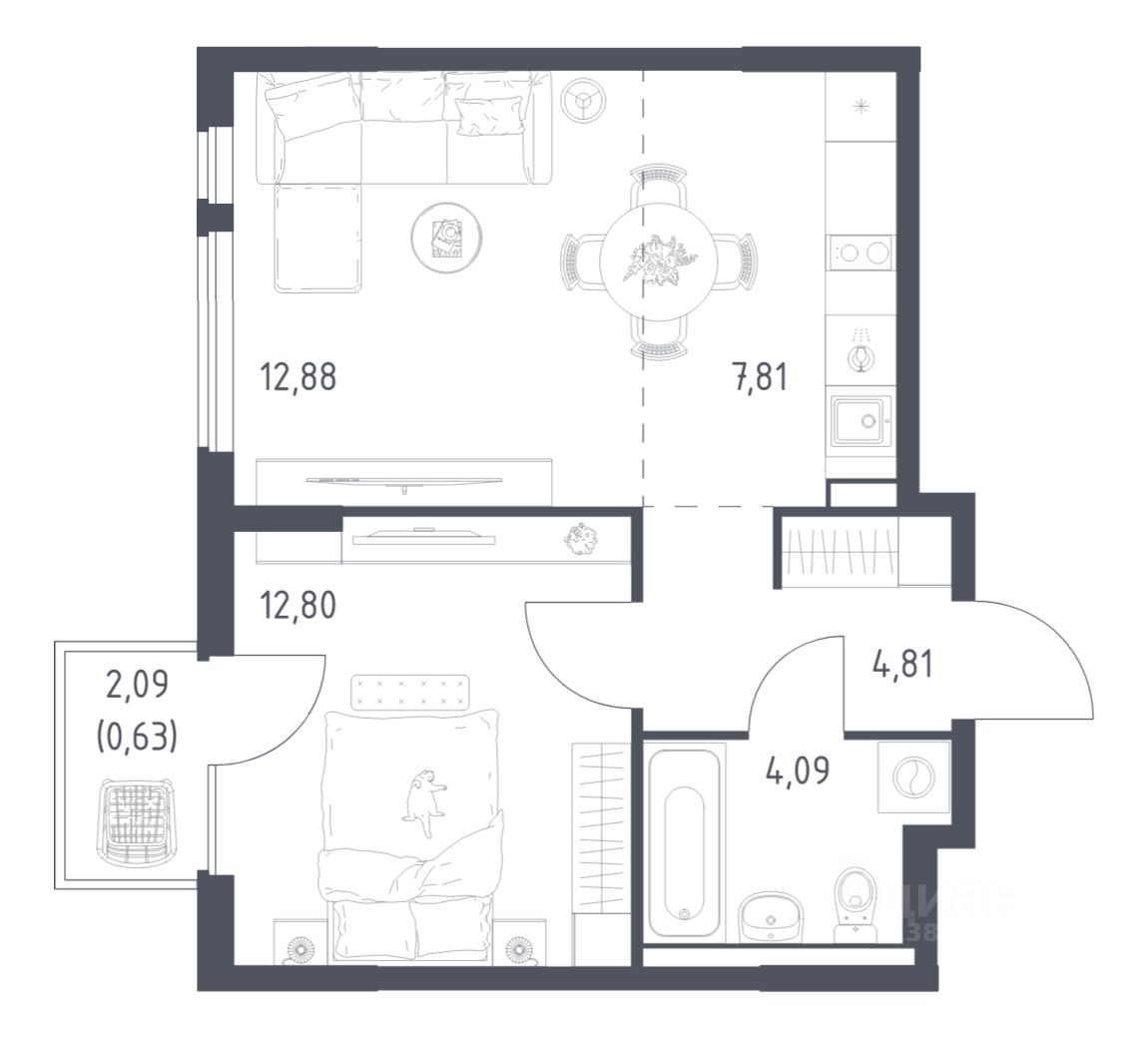 Строим кварталы для жизни с заботой о будущем. Предлагается 1-комнатная квартира комфорт-класса площадью 43,02 кв.м в корпусе 8.1 на 12-м этаже, в жилом комплексе "Горки Парк".