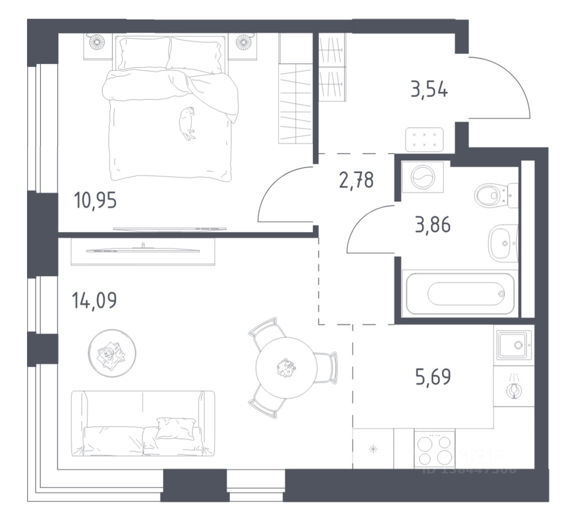 Строим кварталы для жизни с заботой о будущем. Предлагается 1-комнатная квартира комфорт-класса площадью 40,91 кв.м в корпусе 18.2 на 9-м этаже, в жилом комплексе "Новое Видное".