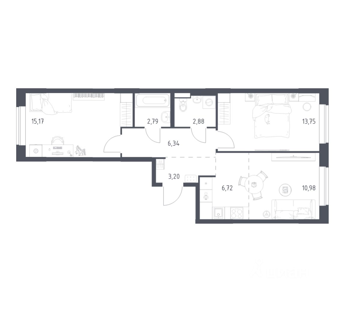 Если не хочется тратить время на ремонт, можно выбрать опцию — с отделкой. Перед тем как отдать ключи, застройщик установит натяжные потолки, поклеит обои под покраску, положит ламинат светлых тонов, а в санузлах — керамическую плитку и керамогранит.
