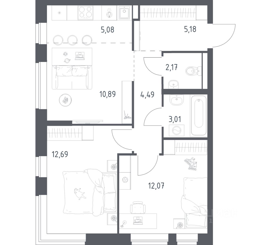 Строим кварталы для жизни с заботой о будущем. Предлагается 2-комнатная квартира комфорт-класса площадью 55,58 кв.м в корпусе 14.2 на 9-м этаже, в жилом комплексе "Новое Видное".