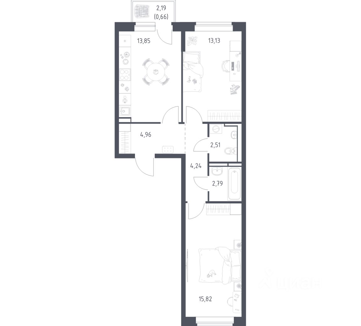 Строим кварталы для жизни с заботой о будущем. Предлагается 2-комнатная квартира комфорт-класса площадью 57,96 кв.м в корпусе 17 на 12-м этаже, в жилом комплексе "Новое Видное".