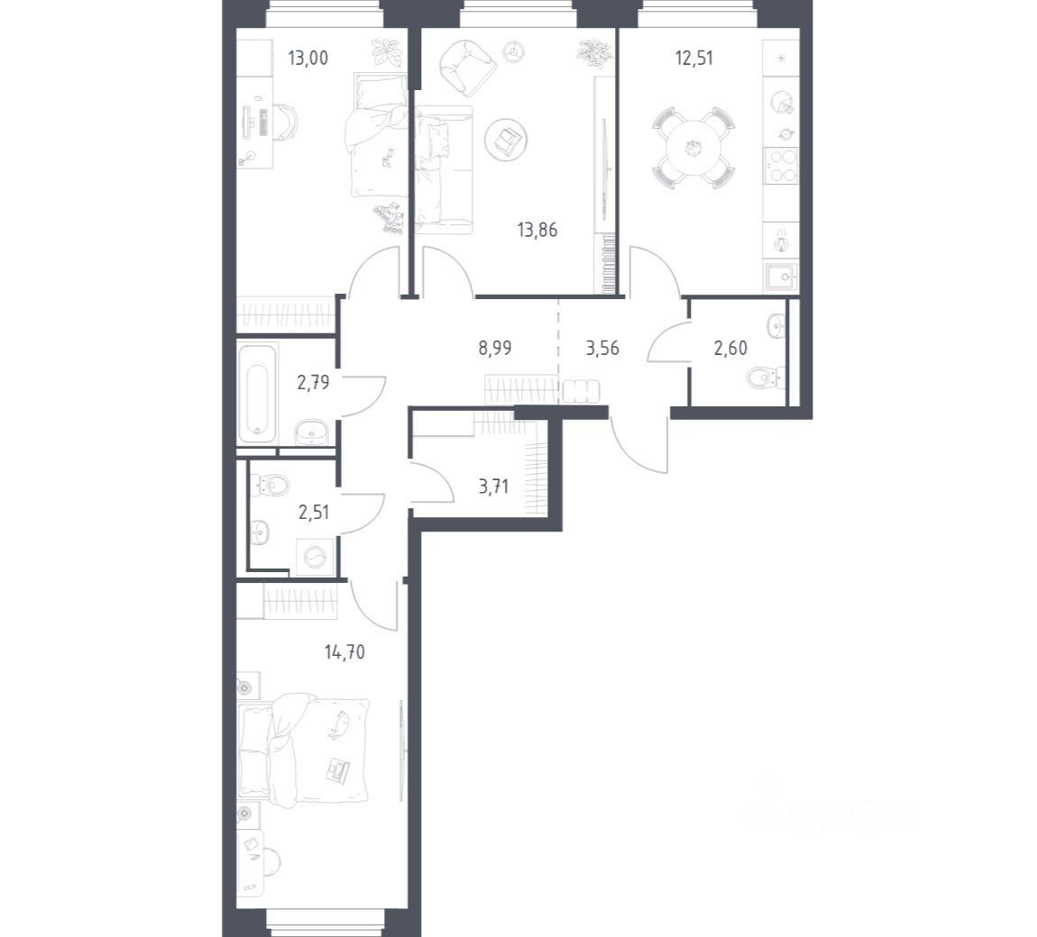 Если не хочется тратить время на ремонт, можно выбрать опцию — с отделкой. Перед тем как отдать ключи, застройщик установит натяжные потолки, поклеит обои под покраску, положит ламинат светлых тонов, а в санузлах — керамическую плитку и керамогранит.