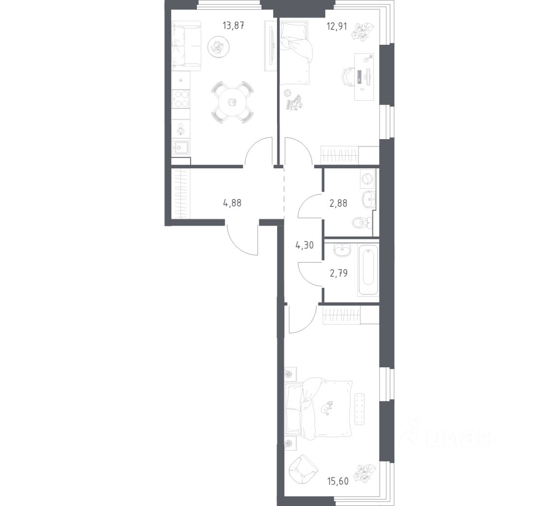 А если не хочется тратить время на ремонт, можно выбрать опцию — с отделкой. Перед тем как отдать ключи, застройщик установит натяжные потолки, поклеит обои под покраску, положит ламинат светлых тонов, а в санузлах — керамическую плитку и керамогранит.