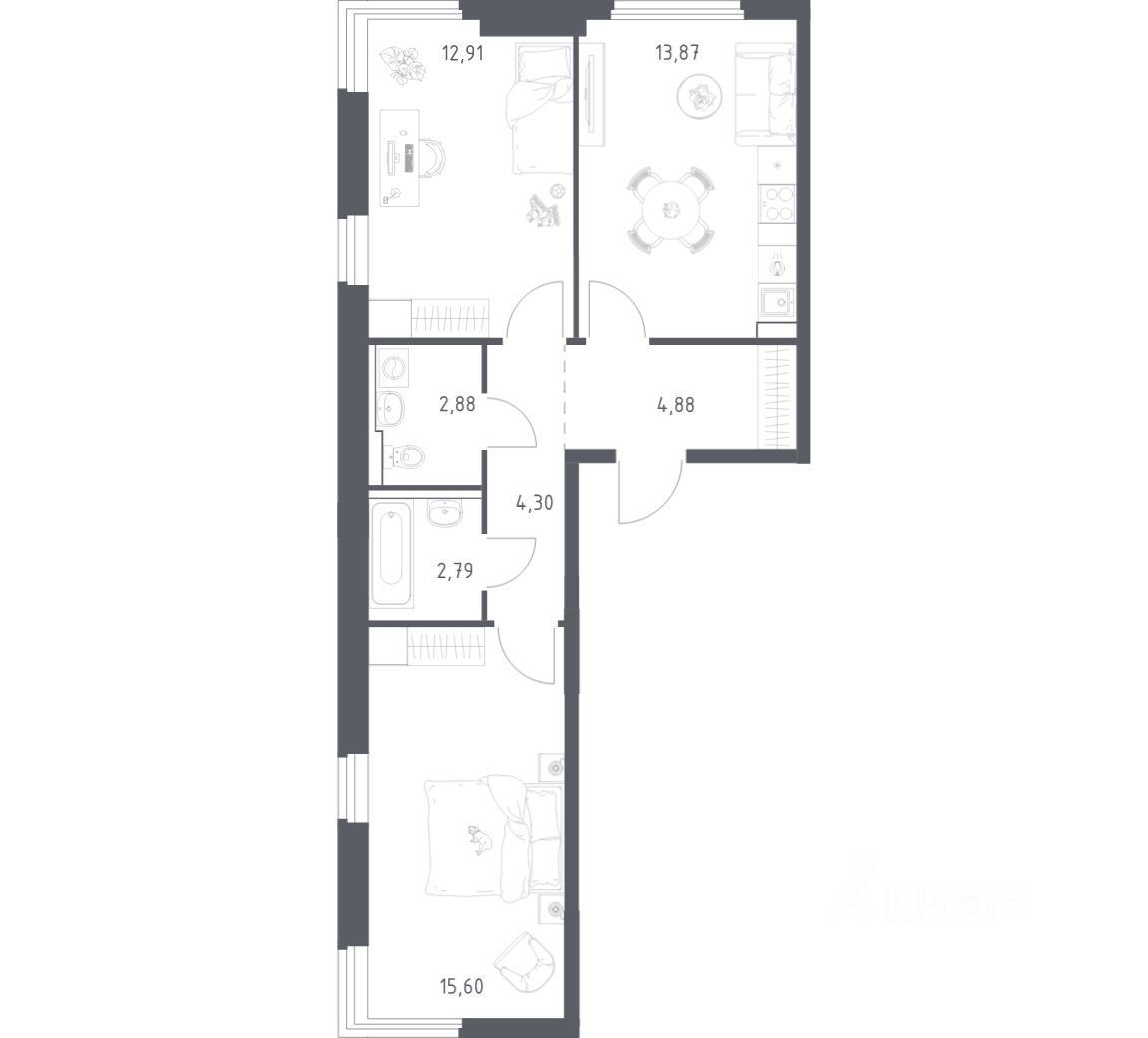 А если не хочется тратить время на ремонт, можно выбрать опцию — с отделкой. Перед тем как отдать ключи, застройщик установит натяжные потолки, поклеит обои под покраску, положит ламинат светлых тонов, а в санузлах — керамическую плитку и керамогранит.