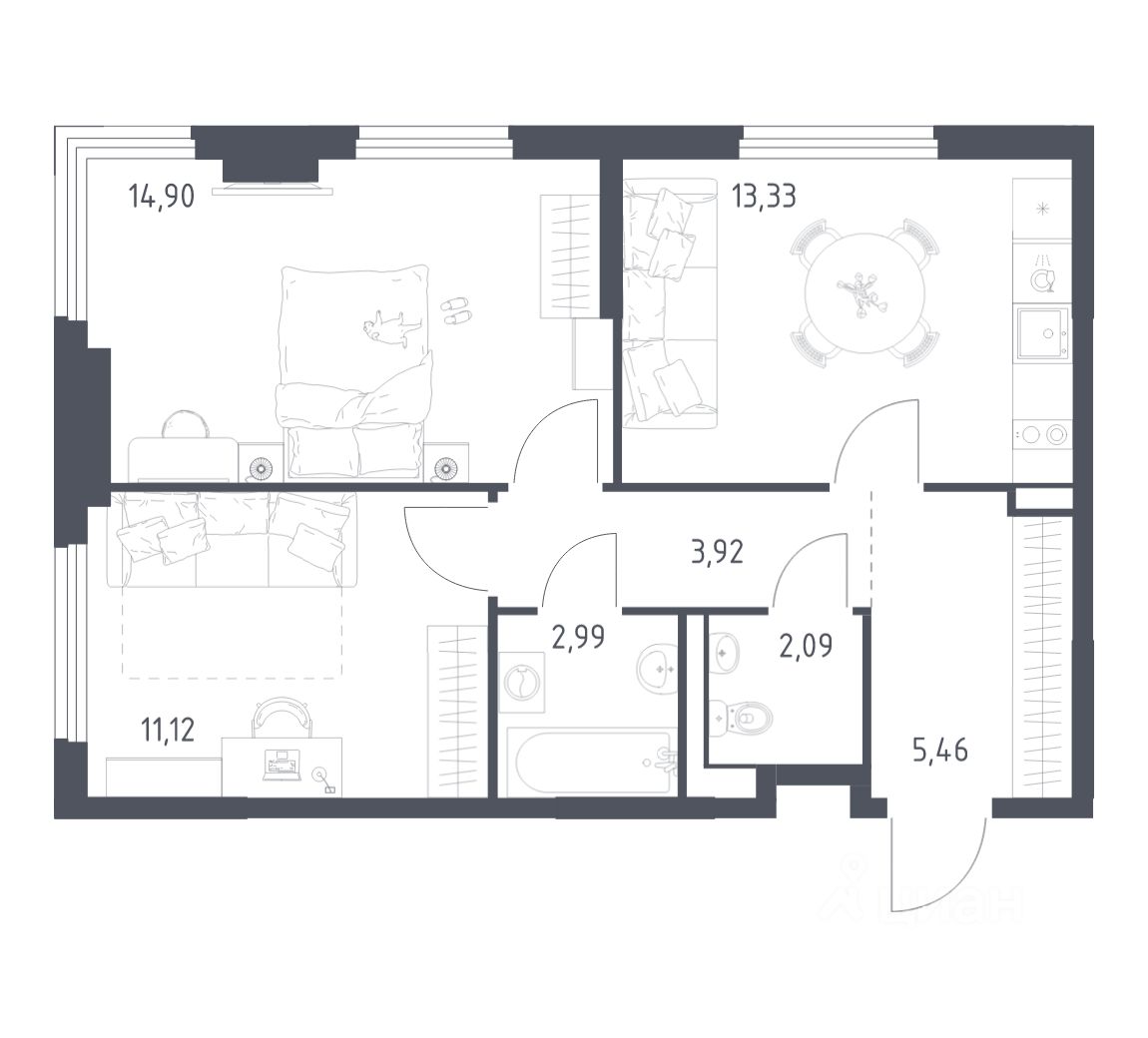 Строим кварталы для жизни с заботой о будущем. Предлагается 2-комнатная квартира комфорт-класса площадью 53,81 кв.м в корпусе 18 на 7-м этаже, в жилом комплексе "Пригород Лесное".
